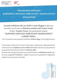 Presentazione dell’opera AUFSTIEG UND FALL DER STADT MAHAGONNY di Kurt Weill
