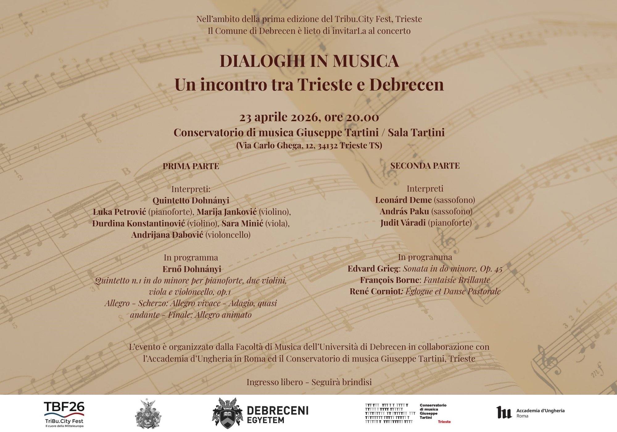 L'evento è organizzato dalla Facoltà di Musica dell'Università di Debrecen in collaborazione con l'Accademia d'Ungheria in Roma ed il Conservatorio di musica Giuseppe Tartini, Trieste.
