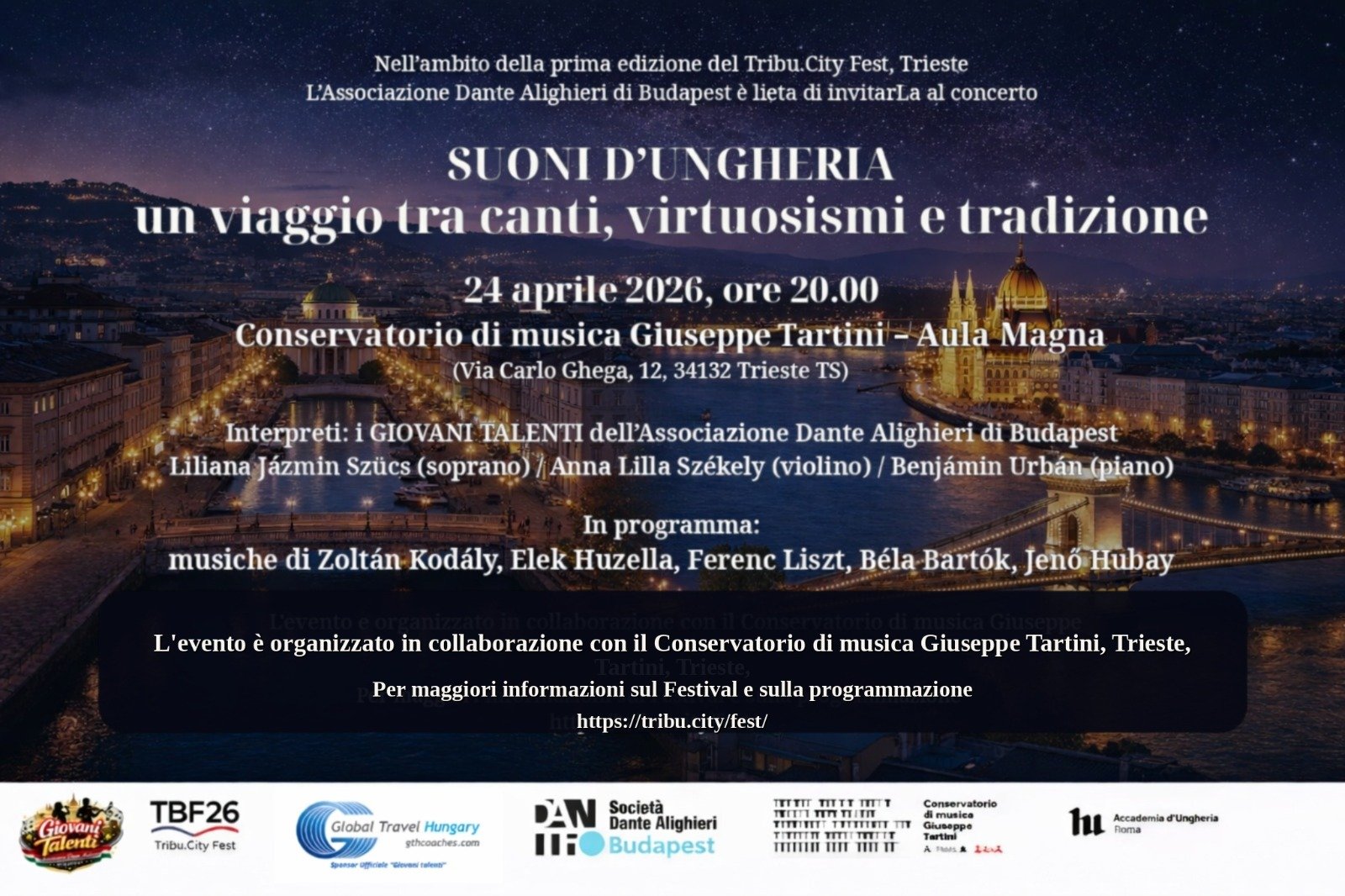L'evento è organizzato in collaborazione con il Conservatorio di musica Giuseppe Tartini, Trieste.