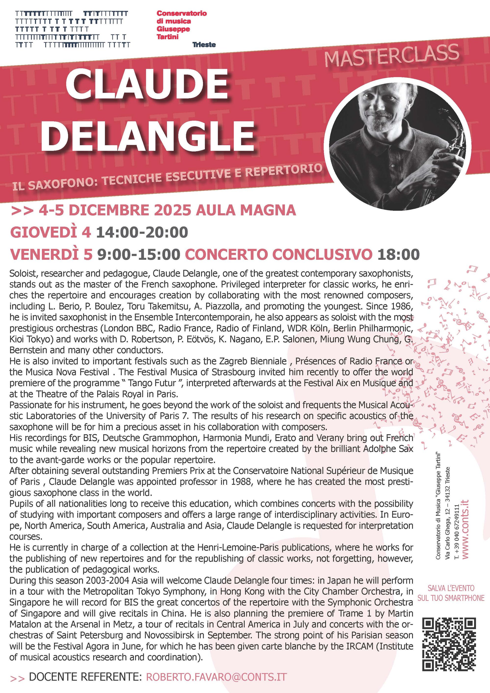 Pupils of all nationalities long to receive this education, which combines concerts with the possibility of studying with important composers and offers a large range of interdisciplinary activities. In Europe, North America, South America, Australia and Asia, Claude Delangle is requested for interpretation courses.