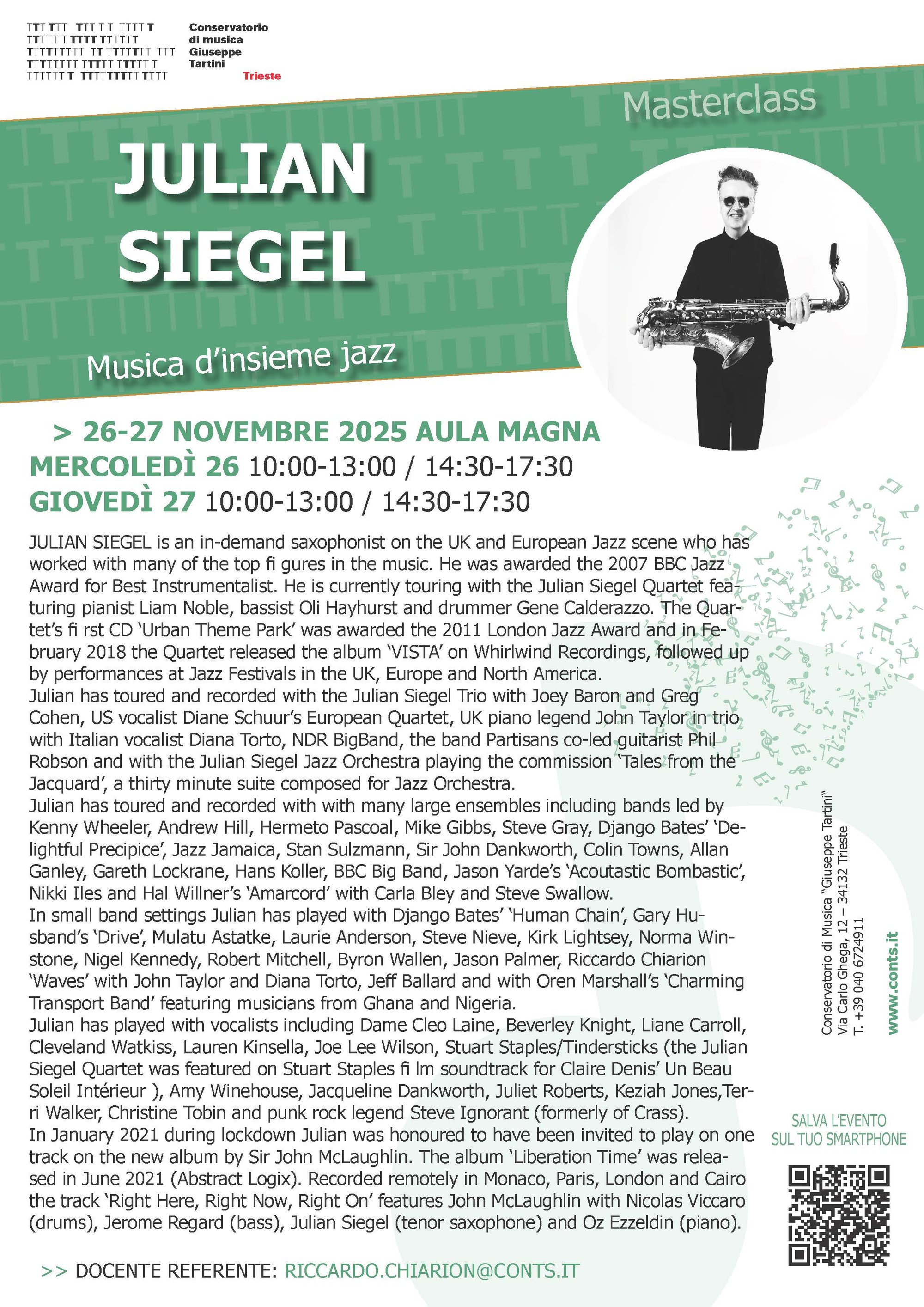JULIAN SIEGEL - Musica d’insieme jazz