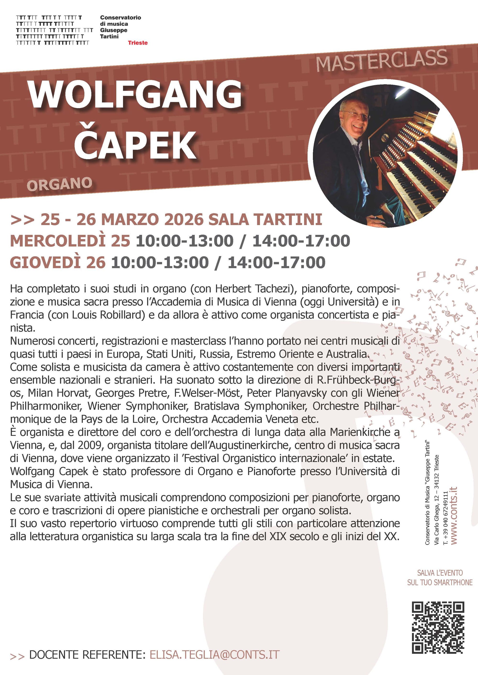 Wolfgang Capek è stato professore di Organo e Pianoforte presso l’Università di Musica di Vienna.